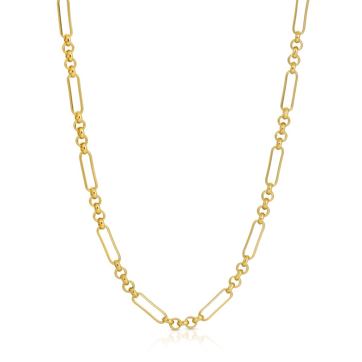 The Bella Chain is perfect for adding modern texture to any look. Its long links and circular links add visual interest and stylish movement.