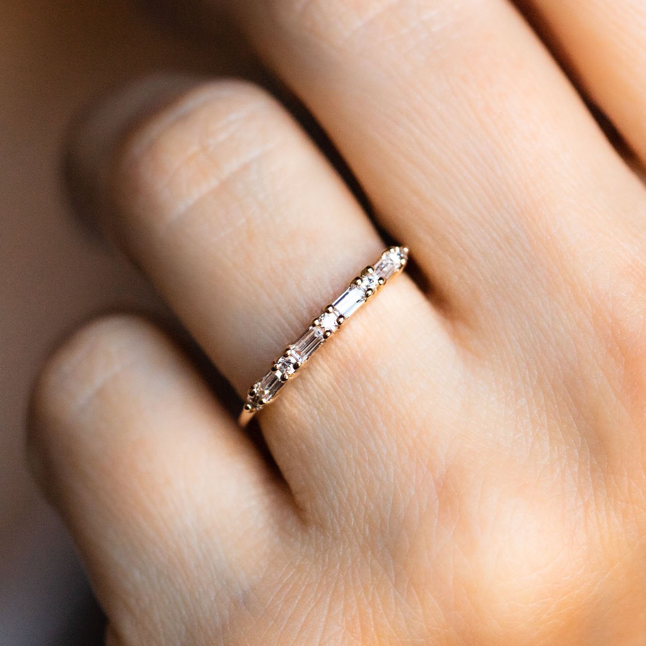 - alternating CZ baguette (4) and CZ round (5) stones