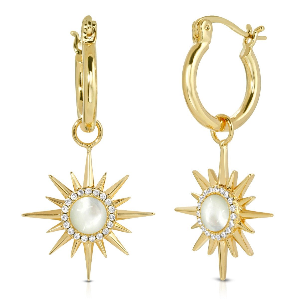 An updated addition to our best selling Starburst collection. These starburst charm hoops can be worn without the charm as well. We love a 2 in 1!