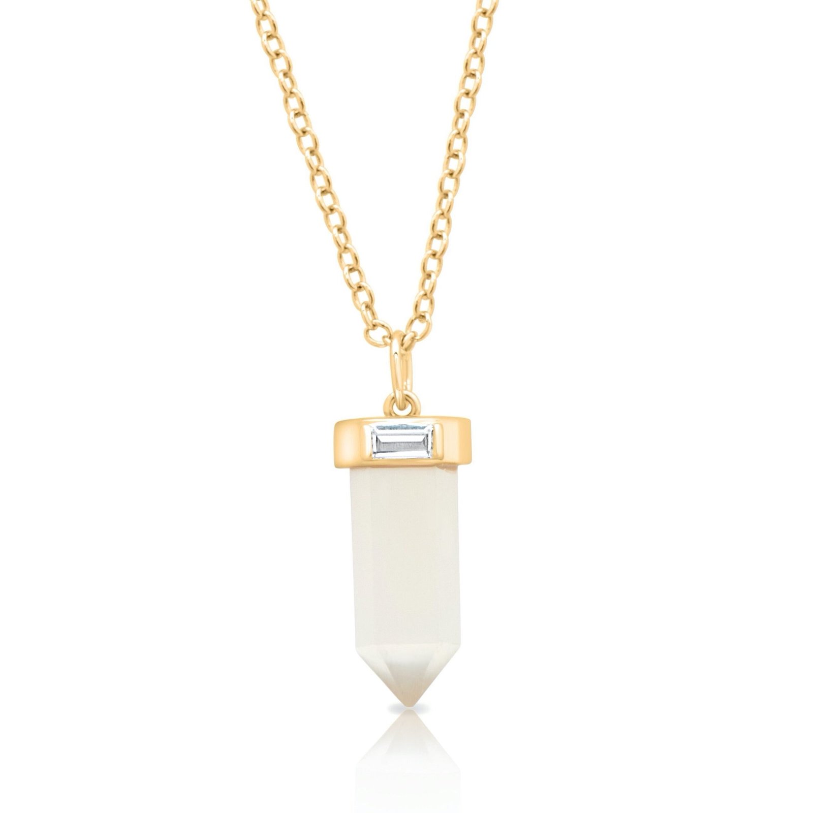 - Pendant is 8mmx 17mm white cat's eye stone